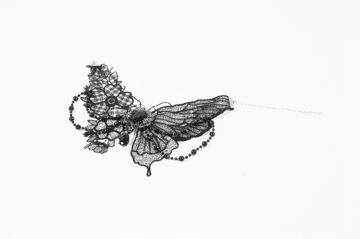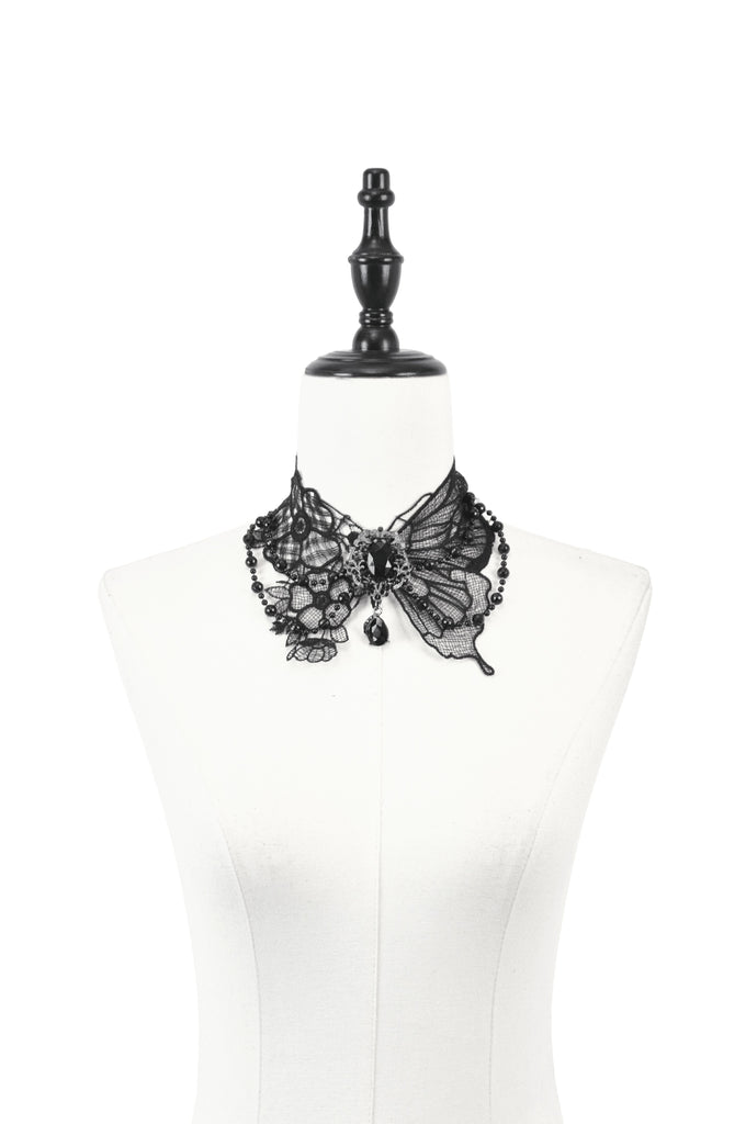 Gothic Butterfly Lace Choker with Black Beads and Gemstone ACK154