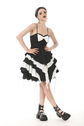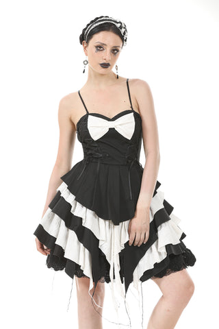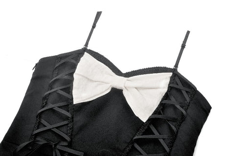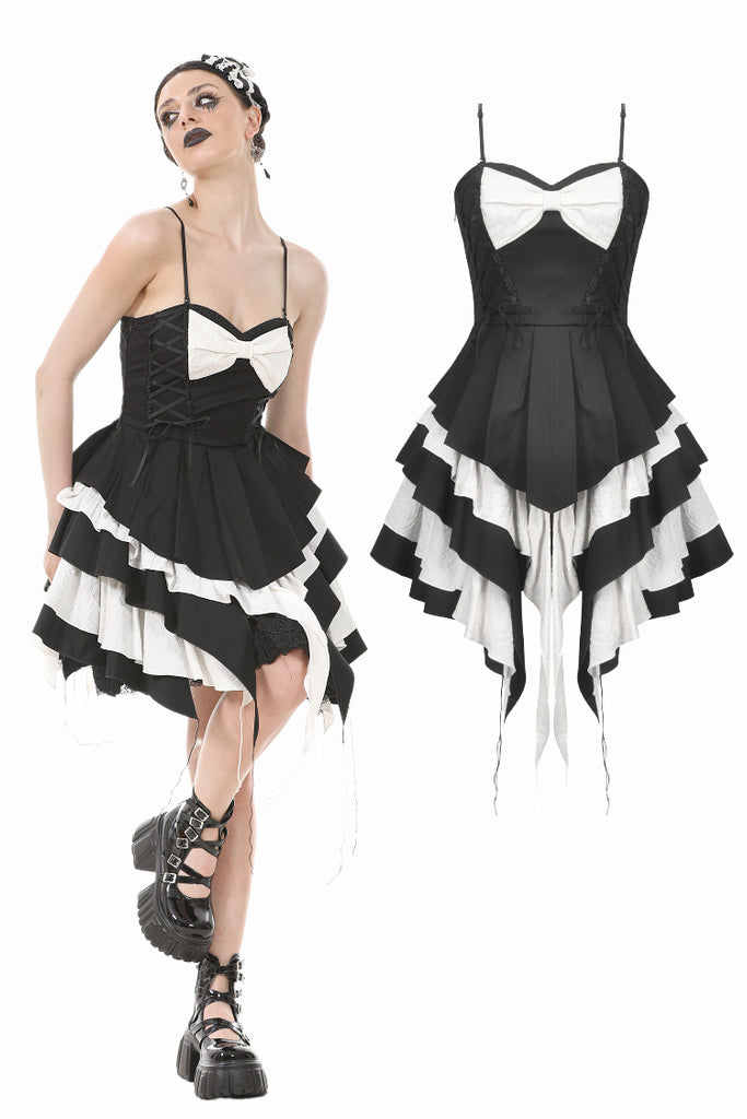 Gothic Lolita Black and White Preppy Bow Dress DW1083