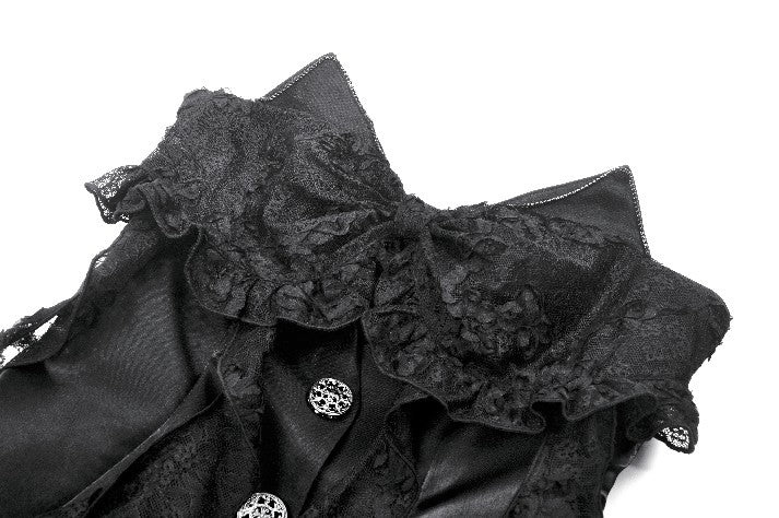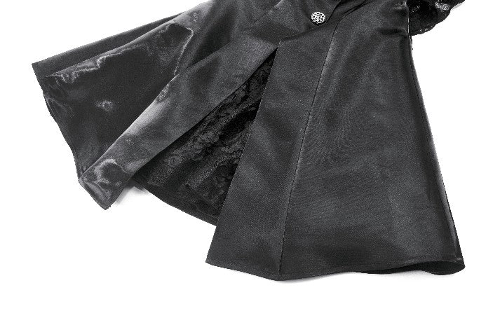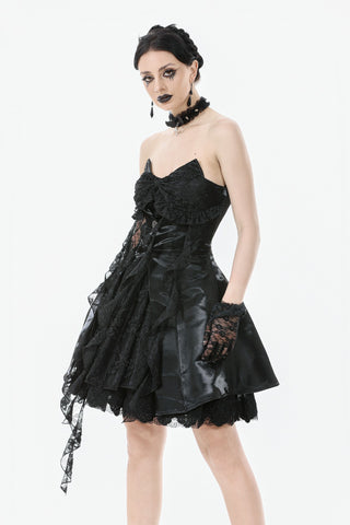 Where sweetness meets the shadows. This captivating strapless dress features playful 3D cat ears with rhinestone chains atop the bodice, blending Gothic mystery with kawaii rebellion. Faux jacket panels in shiny satin fabric add a structured twist, while the embroidered lace bow and irregular layered hem evoke a dreamy silhouette. The floating chiffon strands fall like dandelions in the night, completing this stunning piece. Perfect for stage performances, cosplay events, gothic parties, or fashion shoots.