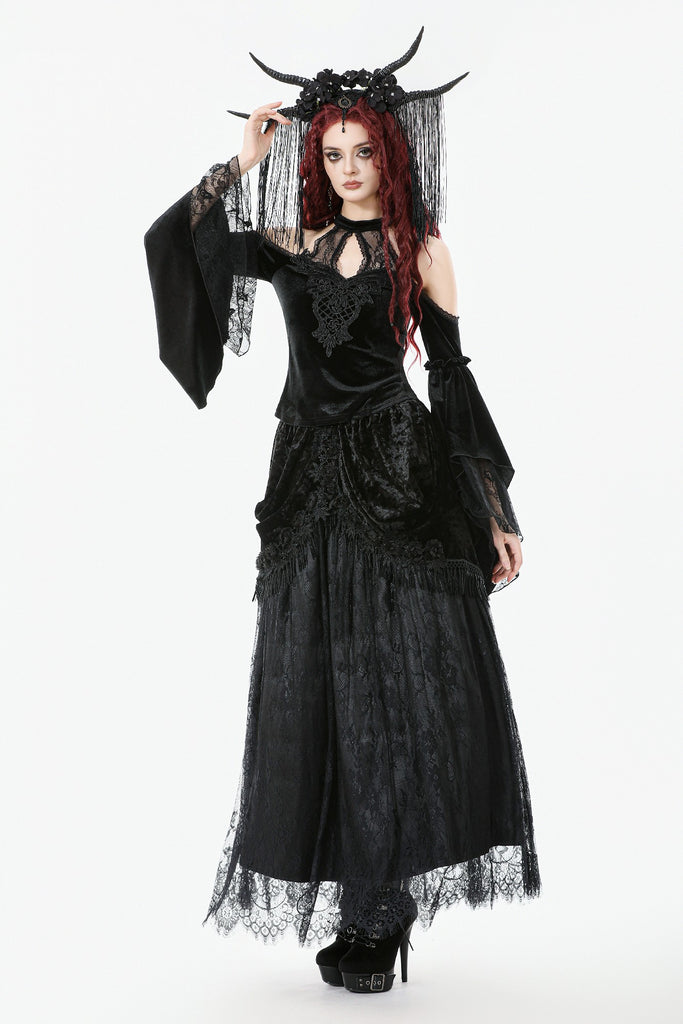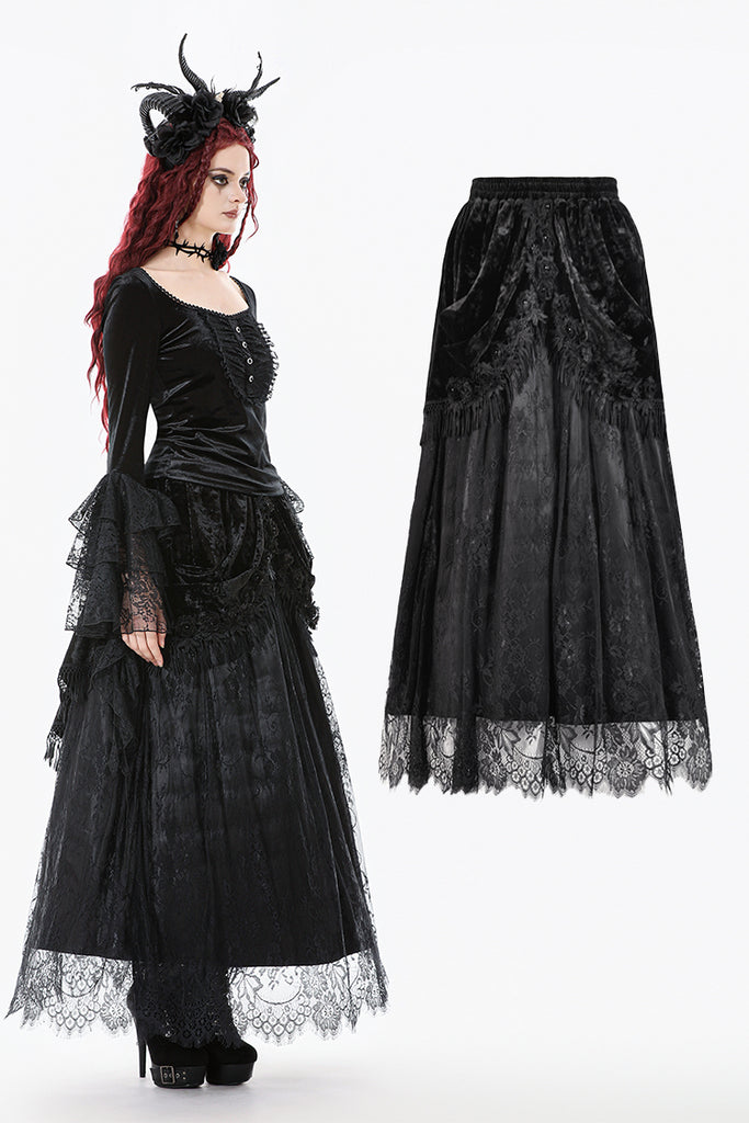 Gothic Court Floral Tassel Maxi Skirt KW410