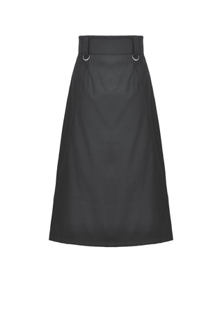 Designed with a bold center cut-out at the waist and reinforced with eyelet-studded fabric straps, the adjustable oversized metal buckle takes center stage both visually and functionally.